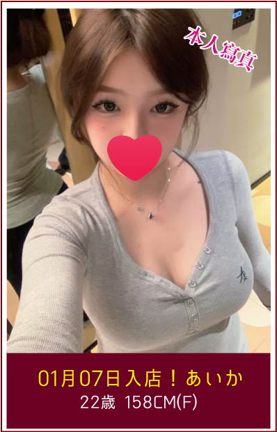 ☆☆2026年1月7日新人入店~☆☆ あいかちゃん(22歳・Fカップ) 妖精のような清楚系美女あいかさん! 透明感のある美しさと、華奢でスレンダーなナイスボディー! 丁寧でふんわりした雰囲気がとっても癒されます!! 控えめで、聞き上手な優しい性格のとっても良い子です♪ あいかさんの寛容でおもてなし精神のマッサージは最高に癒されます!! オススメです!